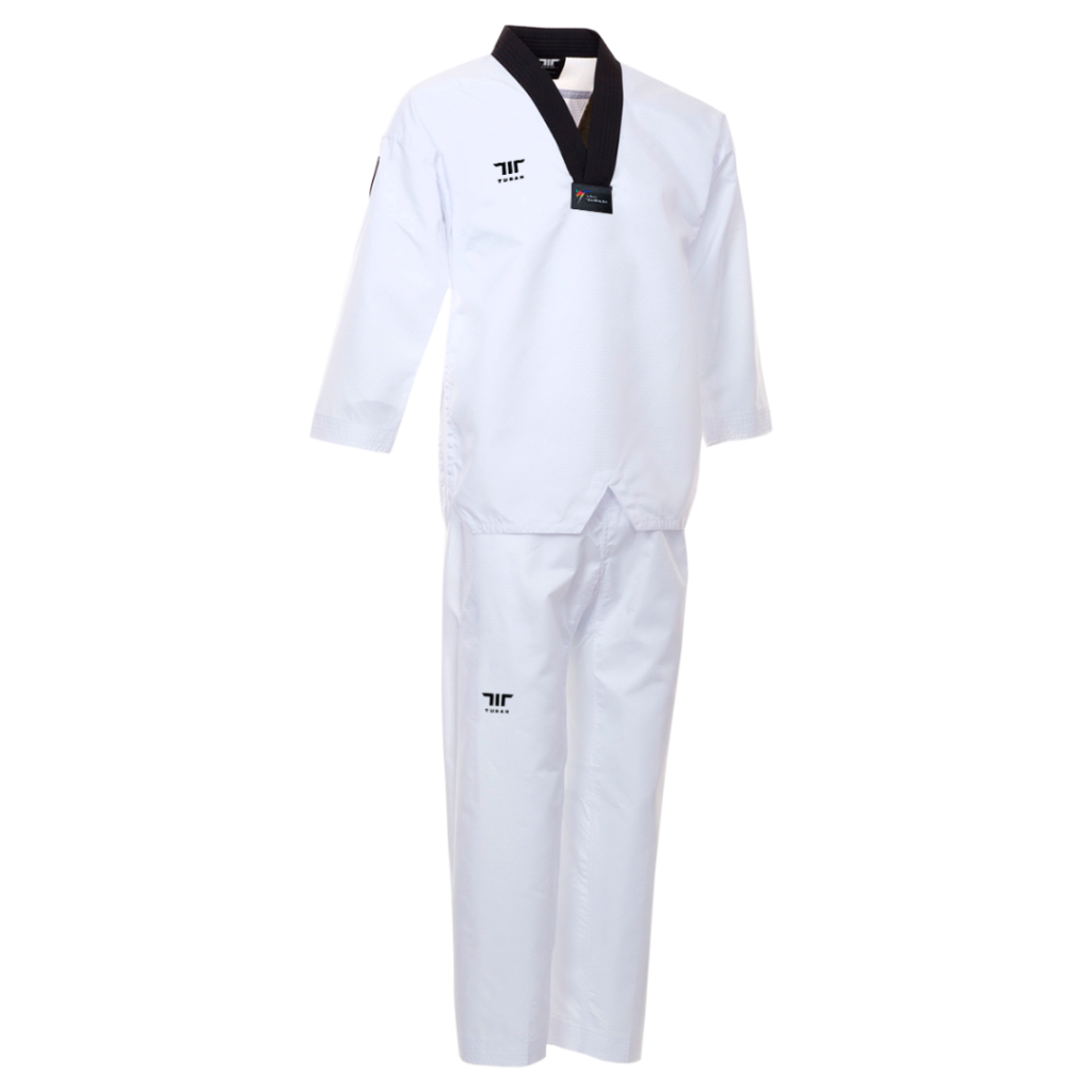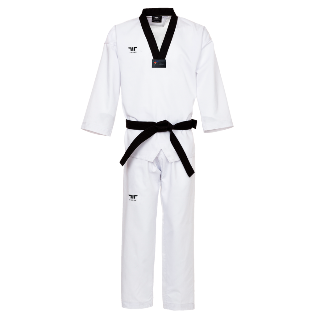 Tusah Ribbed Taekwondo Suit Plain Back Black V Neck.