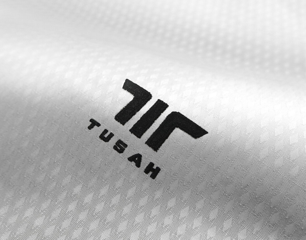 -Tusah embroidered logo underneath the collar on the back.